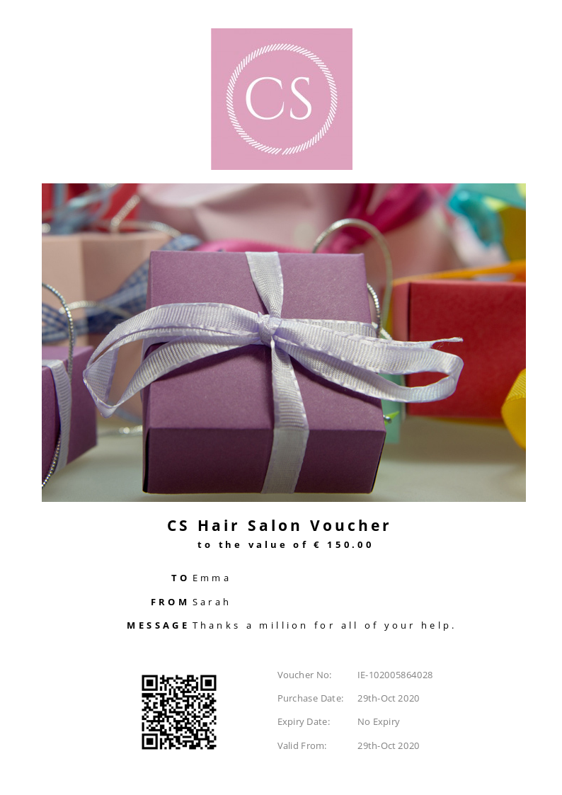 CS Hair Salon allows you to purchase instantly printable gift vouchers, special offers and tickets using the Voucher Connect platform.